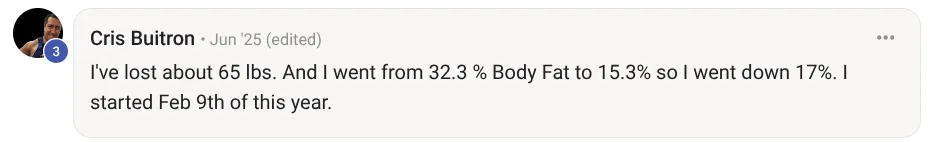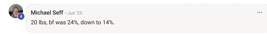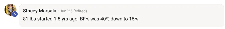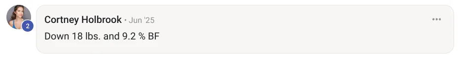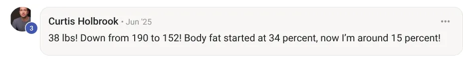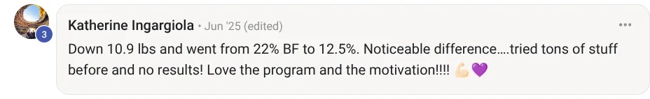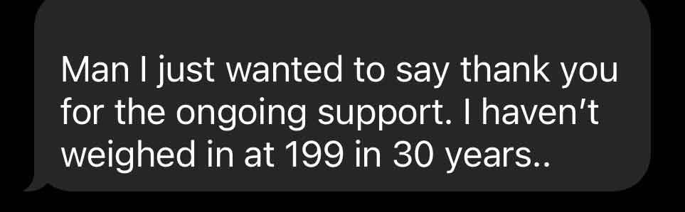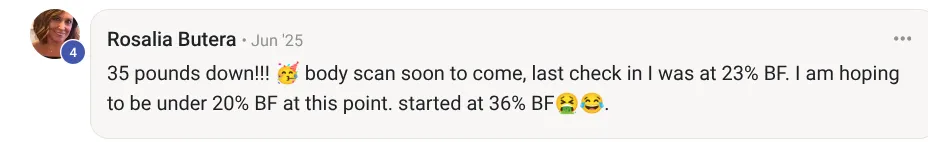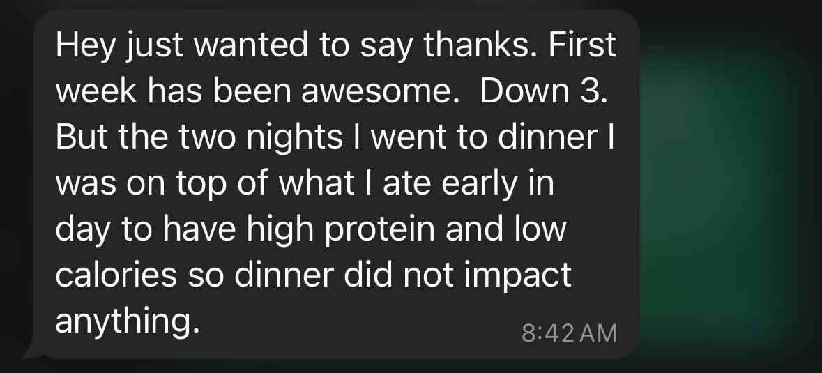 Weekly 1:1 Loom/voice reviews where I go through your tracking data (weight, food, steps, training) and adjust your plan so you’re never guessing what to do next.