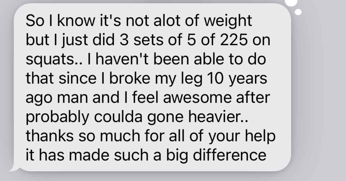 “I was reluctant at first but I’m so glad I jumped on board. Devin got me to a place I haven’t been since high school and stronger than I have ever been. He taught me how to live a healthy life and actually sustain it.”