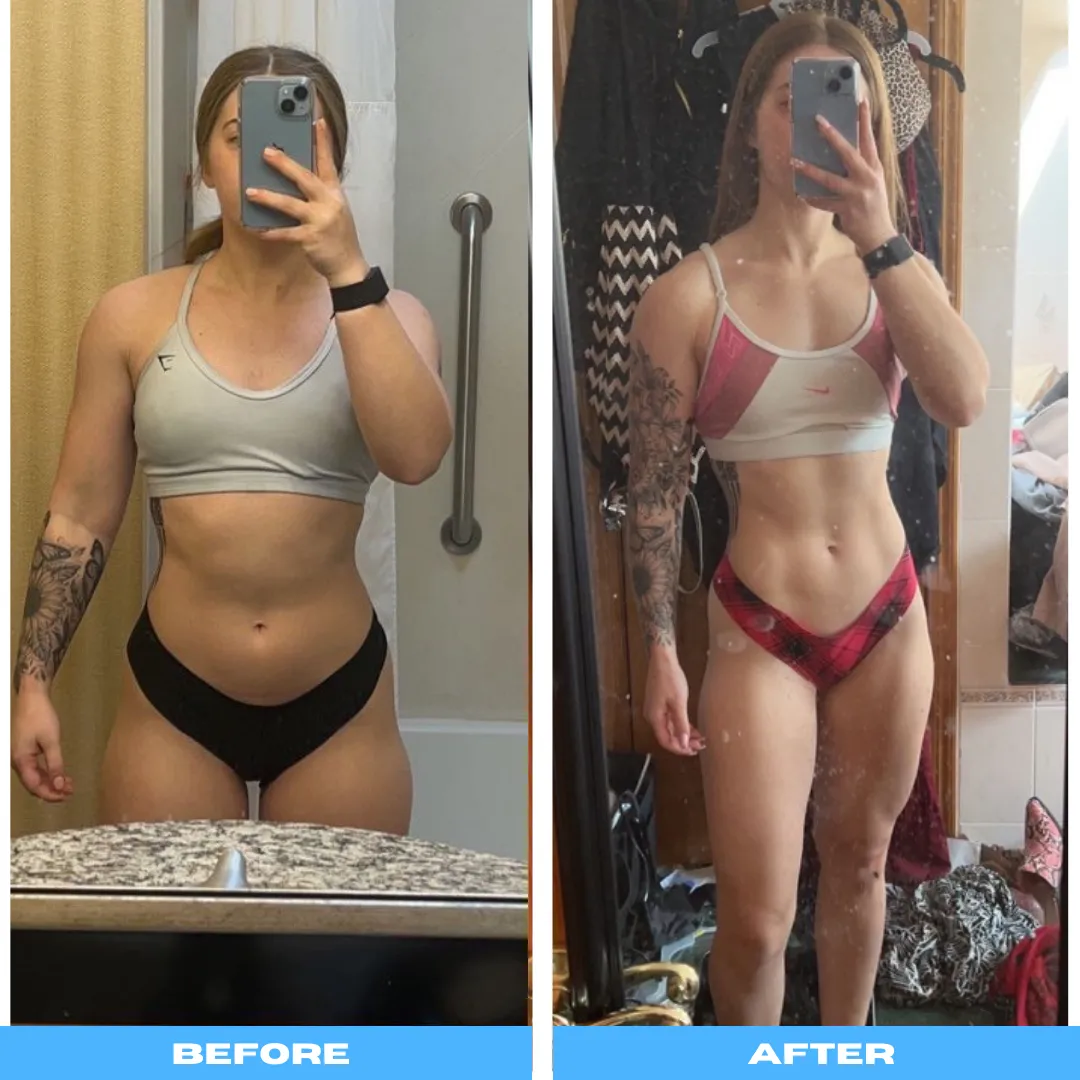 Access to our private Skool group, including an education library (calories, labs, DNA, reverse dieting, etc.) and ongoing support between check‑ins.